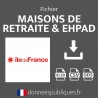 Fichier avec 1079 emails des maisons de retraite et EHPAD de la région Île-de-France (établissement d'hébergement pour personnes âgées dépendantes, établissements de soin de longue durée, résidences autonomie) à télécharger avec les coordonnées officielles de toutes les maisons de retraite et EHPAD de la région Île-de-France en France métropolitaine (adresses e-mails, adresses postales, numéros de téléphone...).